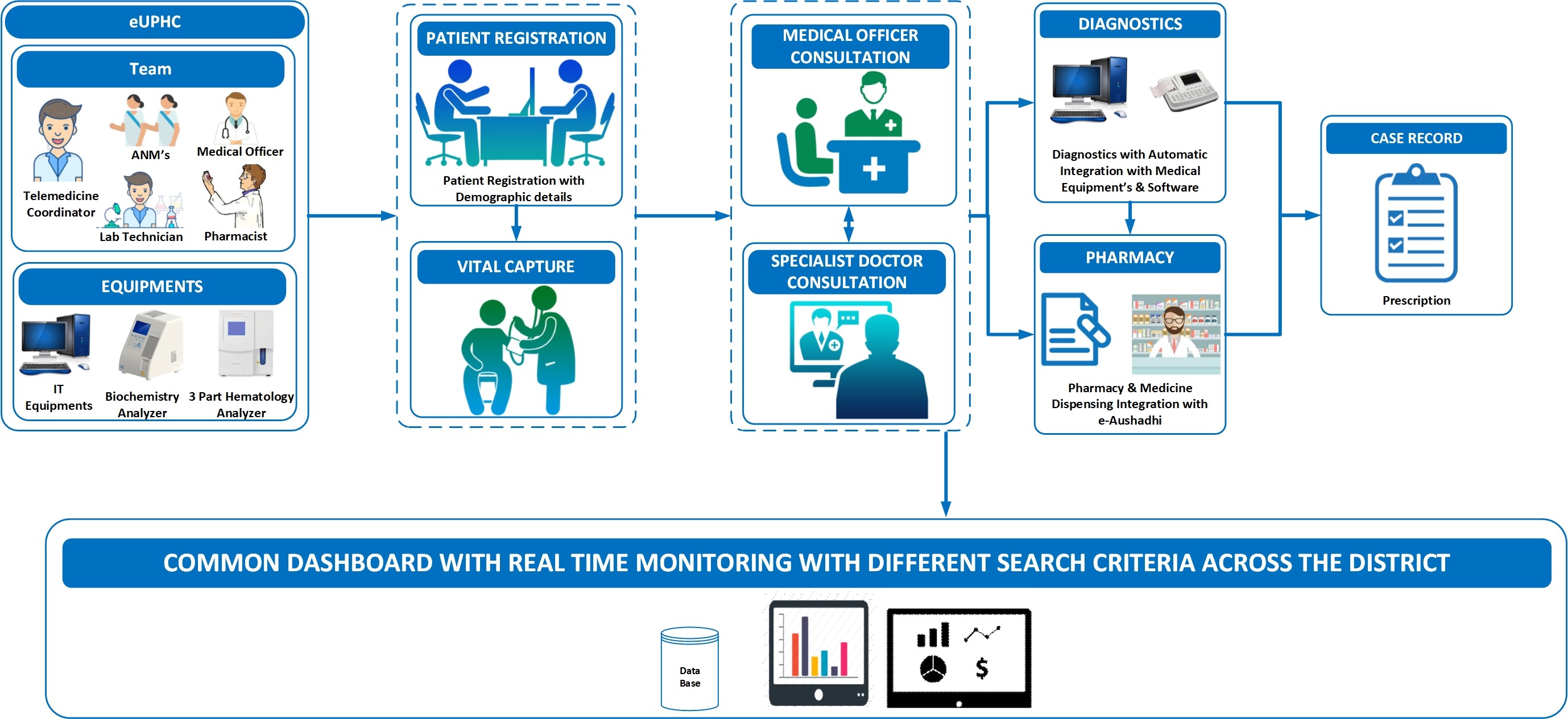 ePHC Solution enables technology based healthcare services at ePHC. ePHC is an integrated curative and preventive health care to the rural population with emphasis on preventive and promotive aspects of health care services available to them and reducing their out-of-pocket expenditures for medical treatment.